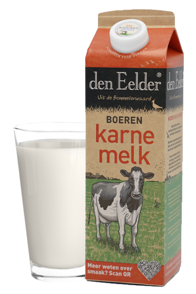 Den Eelder boerenkarnemelk is al verschillende keren uitgeroepen tot de lekkerste karnemelk van Nederland. Wat hem zo bijzonder maakt? Dit komt doordat we de karnemelk nog op traditionele wijze karnen. Hierdoor is hij mooi vol en smaakt hij nog zoals vroeger, romig met een licht zuurtje. “Een unieke dorstlesser zonder vet en daarom een perfecte dorstlesser voor elk moment van de dag”.